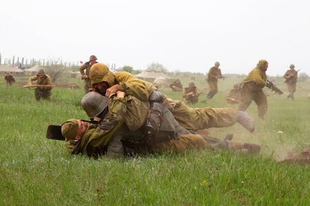 オデッサ ウクライナ 6 人のメンバー クラブの軍事史の可能性がありますドイツ語とロシアの兵士 Ww2 の統一歴史的軍事再生オデッサ ウクライナ 12 年 5 月 6 日 の写真素材 画像素材 Image